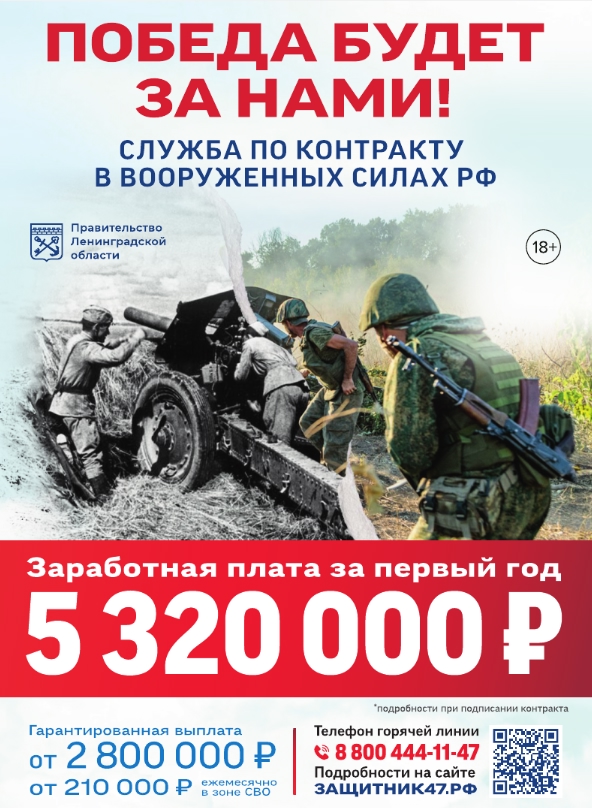 • Ленинградская область повысила финансовую поддержку контрактникам до 2 800 000 рублей!