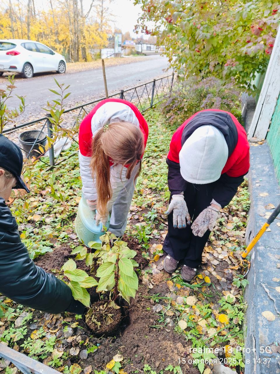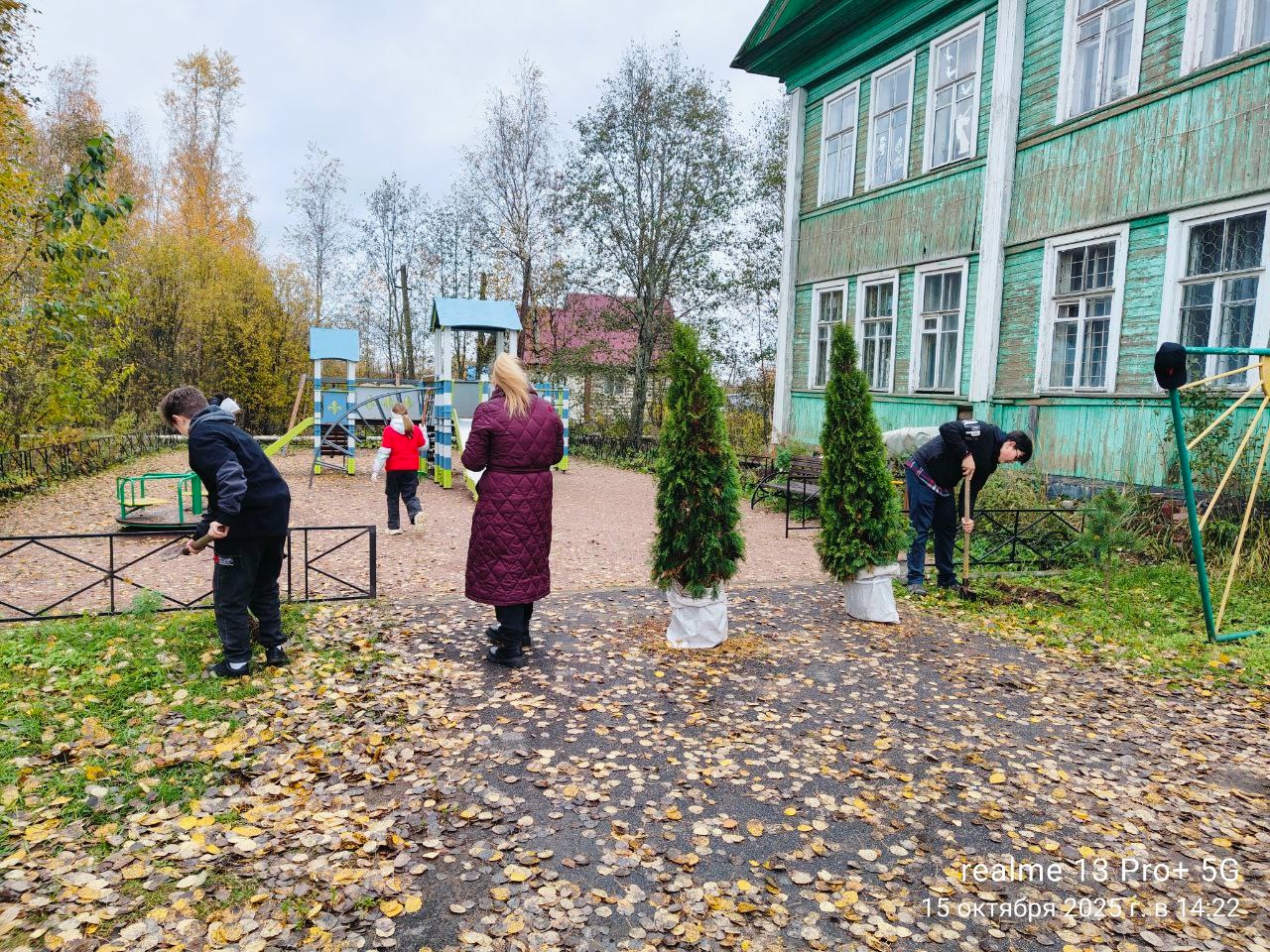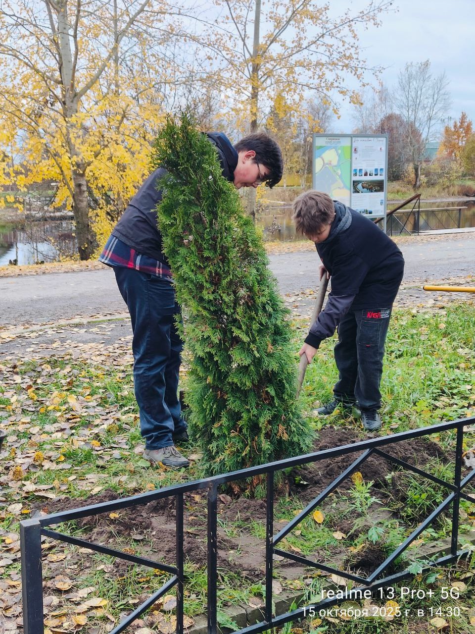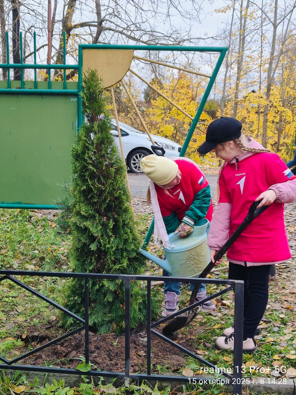 Экологическая инициатива в поселке Свирица: активисты озеленяют детскую площадку Сегодня, 15 октября 2025 года, активисты движения Первых провели важную экологическую акцию в поселке Свирица. Вместе с сотрудниками администрации они высадили молодые саженцы туи и саженец гортензии возле детской площадки. Саженцы были закуплены администрацией поселения специально для этой акции.