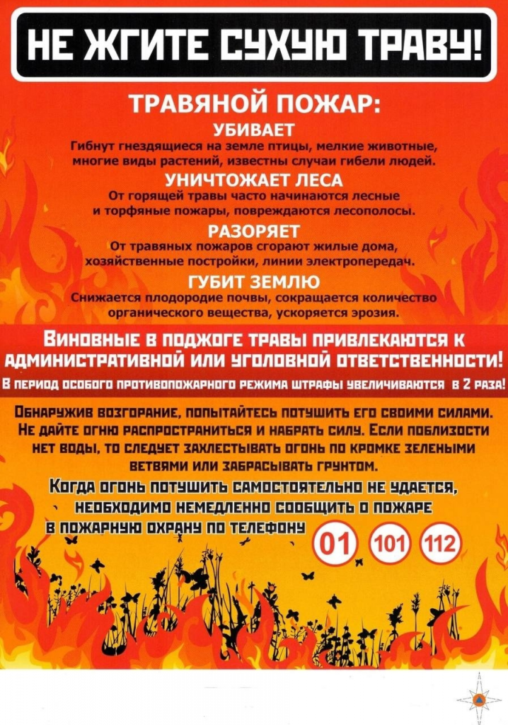 Не жгите сухую траву! Опубликовано 11.03.2026 в рубрике Объявления для населения, Пожарная безопасность